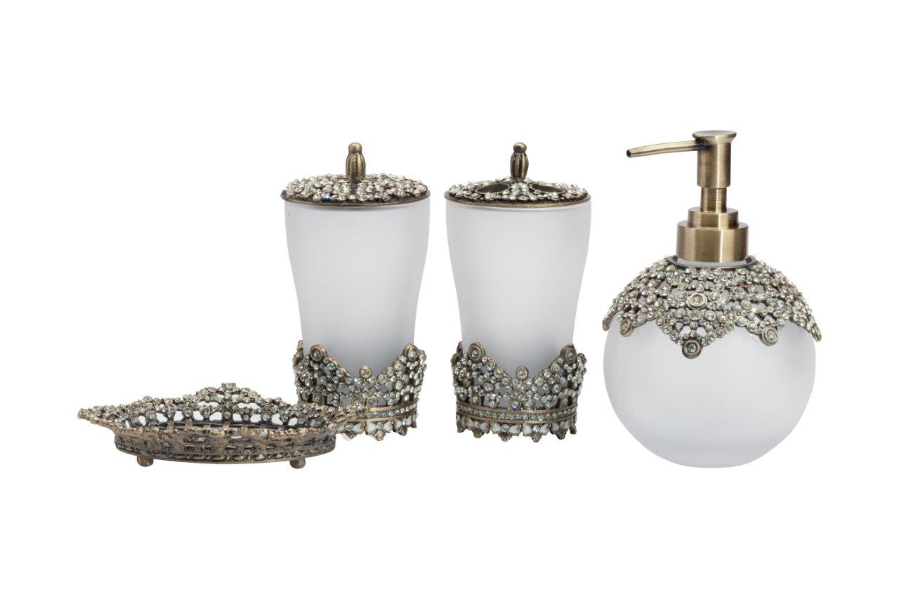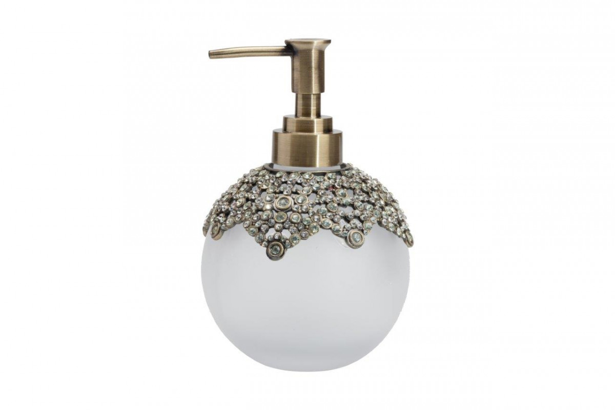 Дозатор для жидкого мыла Heather изготовлен в виде круглого стеклянного флакона, верхняя часть которого обрамлена кружевной металлической вязью, инкрустированной стеклянными камешками. Благодаря изящному дизайну, удобству и легкости в использовании, является незаменимым аксессуаром для любого стиля ванной комнаты. Изготовлена из совершенно безопасных натуральных материалов. Непременно приобретите его вместе с другими предметами коллекции Heather для вашей ванной комнаты. Такой набор, несомненно, станет и шикарным подарком.