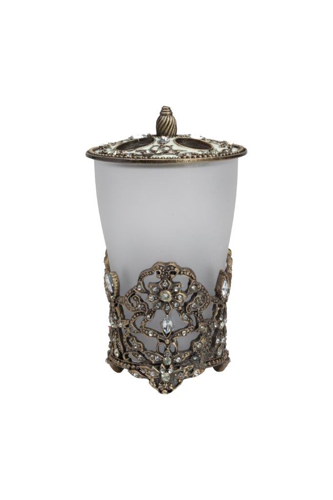 Подставка для зубных щёток Dawn изготовлена из матового стекла, помещена в подстаканник из металлических кружев, на металлической крышке — удобная ручка и четыре отверстия для щёток, которые выгодно дополняют общий дизайн подставки. Изготовлена из совершенно безопасных натуральных материалов, подойдёт к любому стилю интерьера. Непременно приобретите её вместе с другими предметами коллекции Dawn для вашей ванной комнаты. Такой набор, несомненно, станет и шикарным подарком.