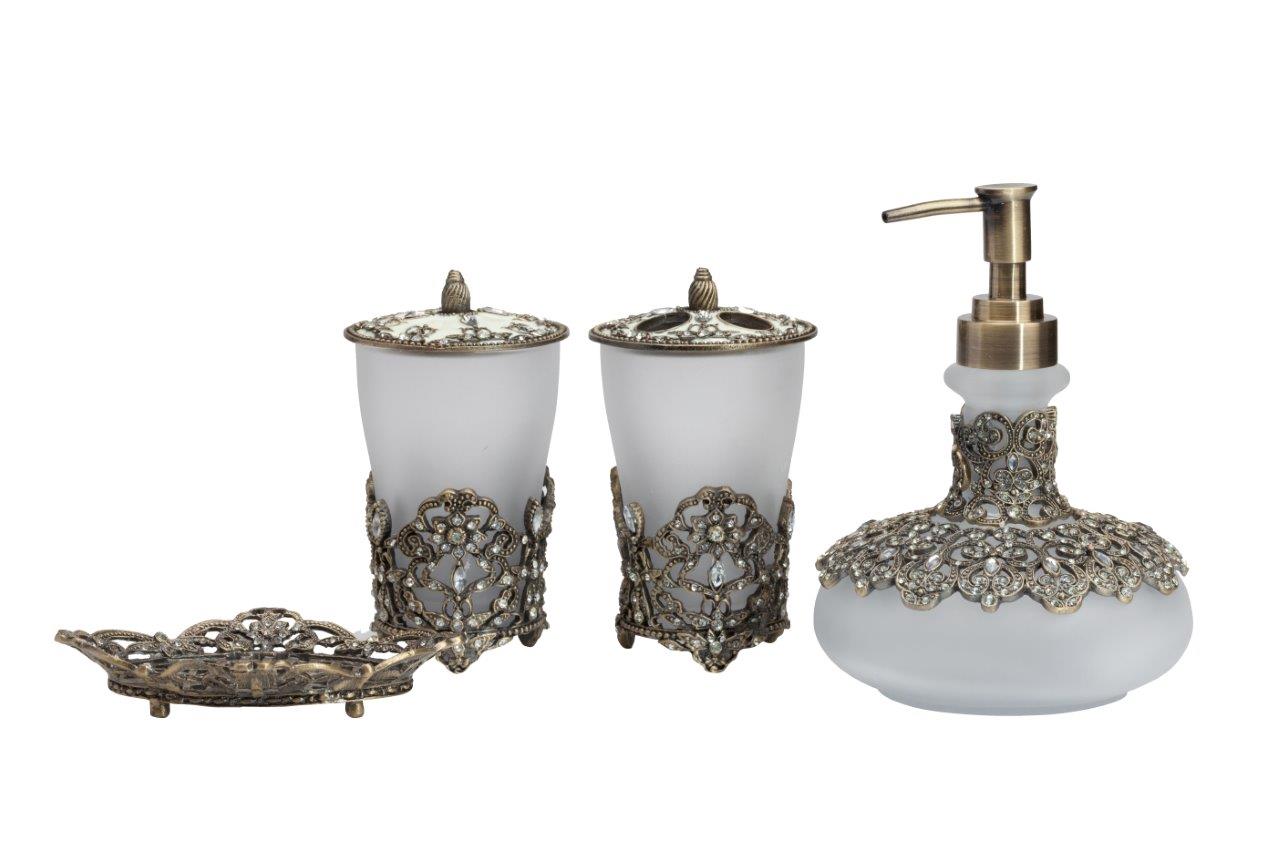 Подставка для зубных щёток Isolde изготовлена из матового стекла, помещена в подстаканник из металлических кружев, на металлической крышке — удобная ручка и четыре отверстия для щёток, которые выгодно дополняют общий дизайн подставки. Изготовлена из совершенно безопасных натуральных материалов, подойдёт к любому стилю интерьера. Непременно приобретите её вместе с другими предметами коллекции Aarushi для вашей ванной комнаты. Такой набор, несомненно, станет и шикарным подарком.