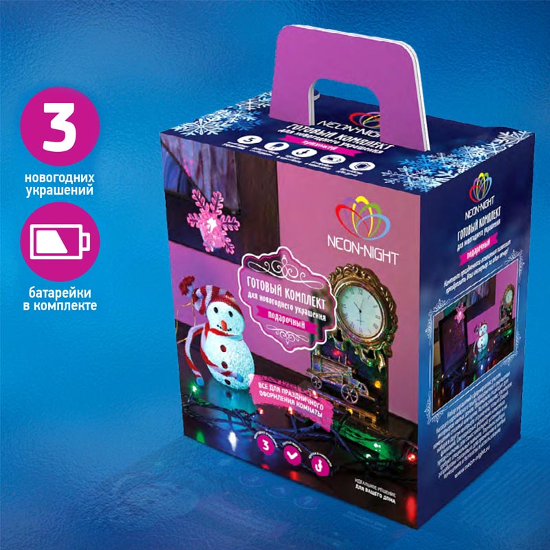 Состав набора для украшения: Гирлянда нить 1шт. 4м, Фигурка на стол 1шт, Фигурка на присоске 1шт