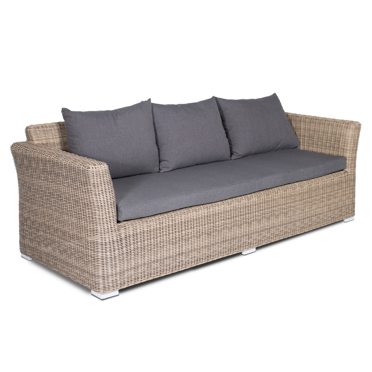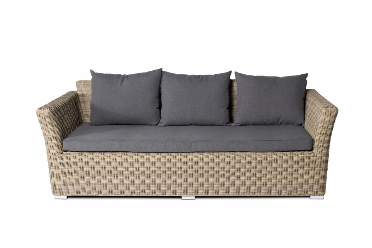 Капучино, плетеный трехместный диван в комплекте с подушками, алюминиевый каркас, круглый искусственный ротанг, ручное плетение, размер 220х85х81 см, цвет соломенный