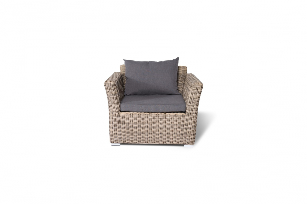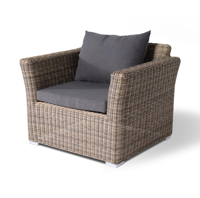 Капучино, плетеное кресло в комплекте с подушками, алюминиевый каркас, круглый искусственный ротанг, ручное плетение, размер 105х85х81 см, цвет соломенный