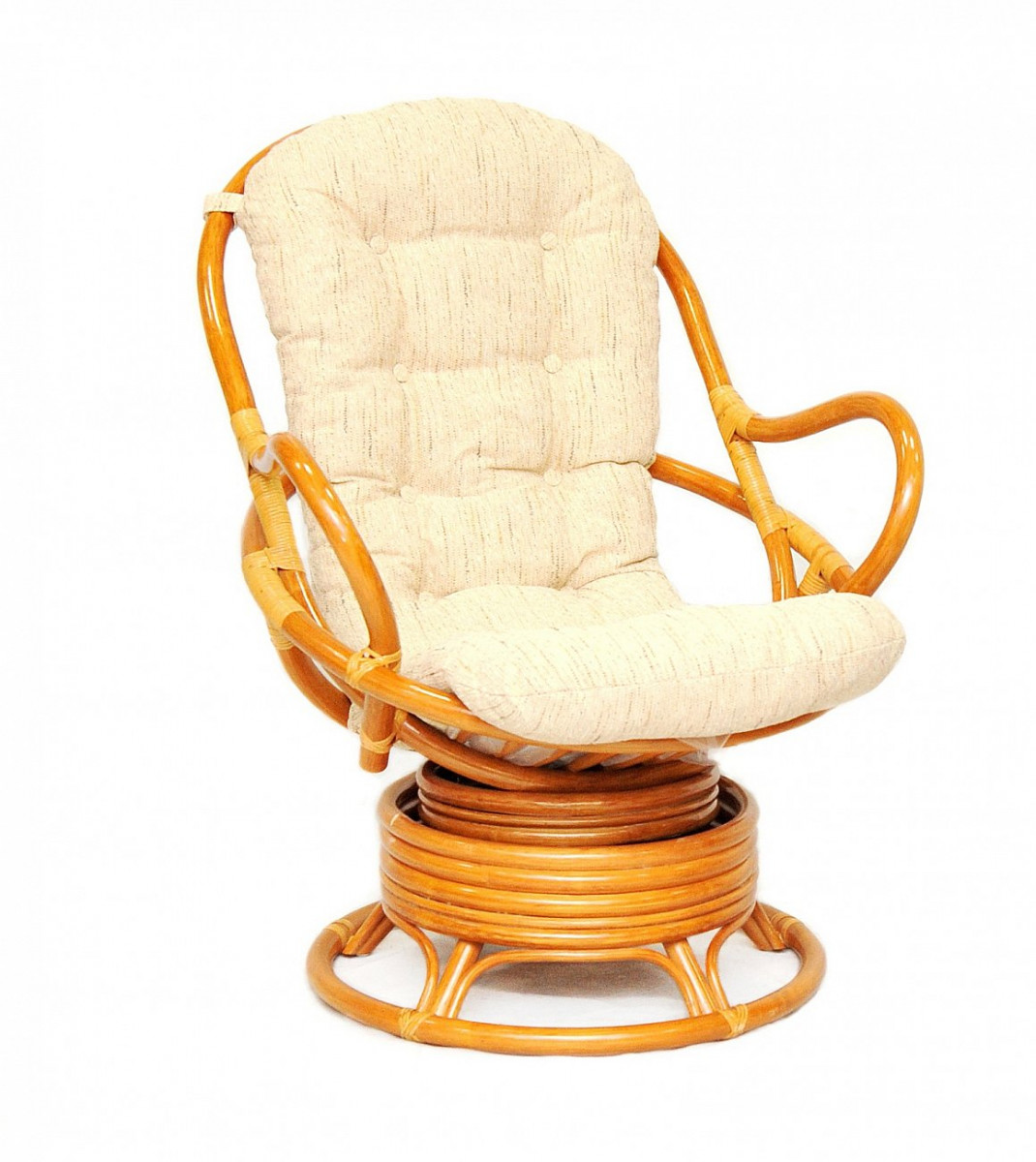 Кресло механическое из ротанга снабжено специальным механизмом, благодаря которому вы можете равномерно покачиваться и вращаться, не вставая с кресла.
