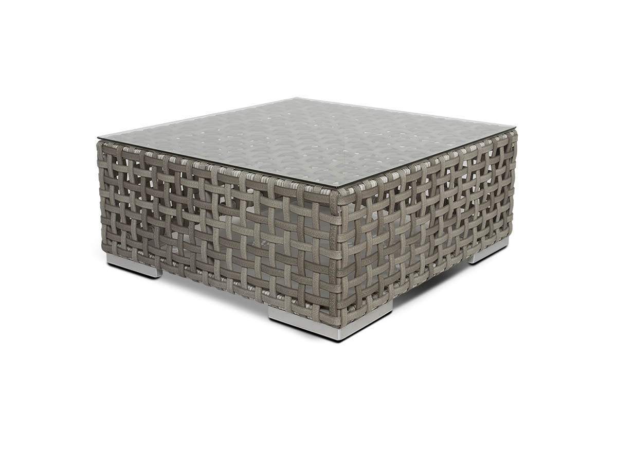 Канти , артикул A085D2, столик кофейный со стеклянной столешницей толщиной 5 мм, алюминиевый каркас, искусственный ротанг, размеры 770x770x320, цвет серый