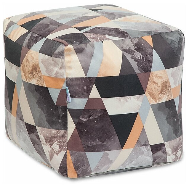 Пуф квадратный Рица, микровельвет, серо-бежевый, Delicatex