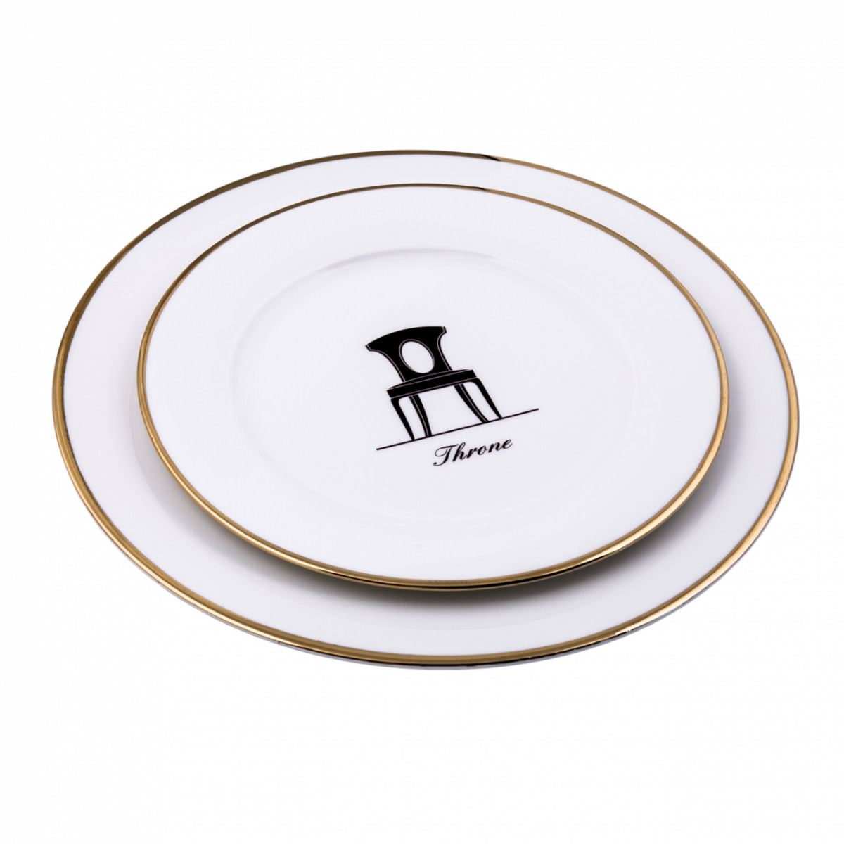 Комплект тарелок Flock выполнен из качественного фарфора. Большая тарелка диаметром 25,5 см, маленькая - диаметром 20,5 см белого цвета с золотой каймой и изображением стула в центре тарелки. Можно использовать отдельно, а также в комплекте с чайной парой Flock.