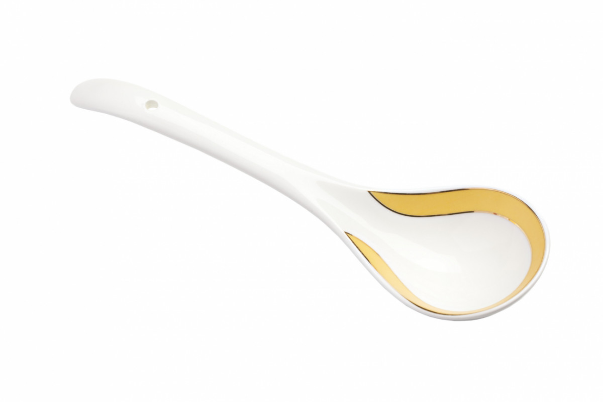 Большая ложка серии «Marbella» выполнена из тонкого костяного фарфора и украшена золотой окантовкой. Сочетание белоснежного и золотого цветов придают изделию изысканный благородный стиль.