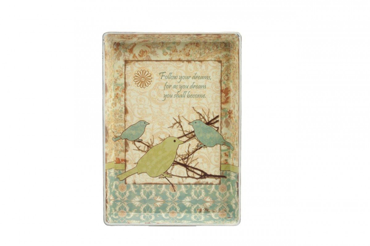 Декоративный поднос Palazzo — это изысканный и уникальный элемент декора интерьера, являющийся ярким представителем аксессуаров в стиле Прованс. Он изготовлен из керамики, имеет простую прямоугольную форму, это говорит о его деревенском очаровании и незамысловатости. Неброский рисунок в виде птиц на нежном фоне приятных пастельных тонов придаёт подносу особый шарм и легкость.
