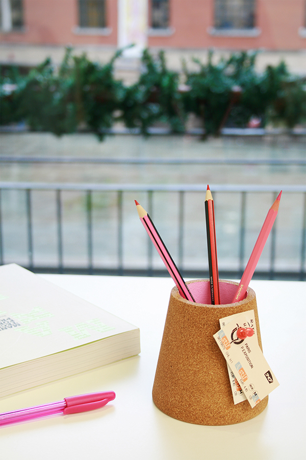 Стакан для ручек пробковый розовый