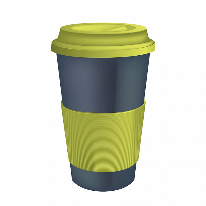 Термостакан серый с салатовым термодержателем купить в Нижневартовске цена 500 руб.