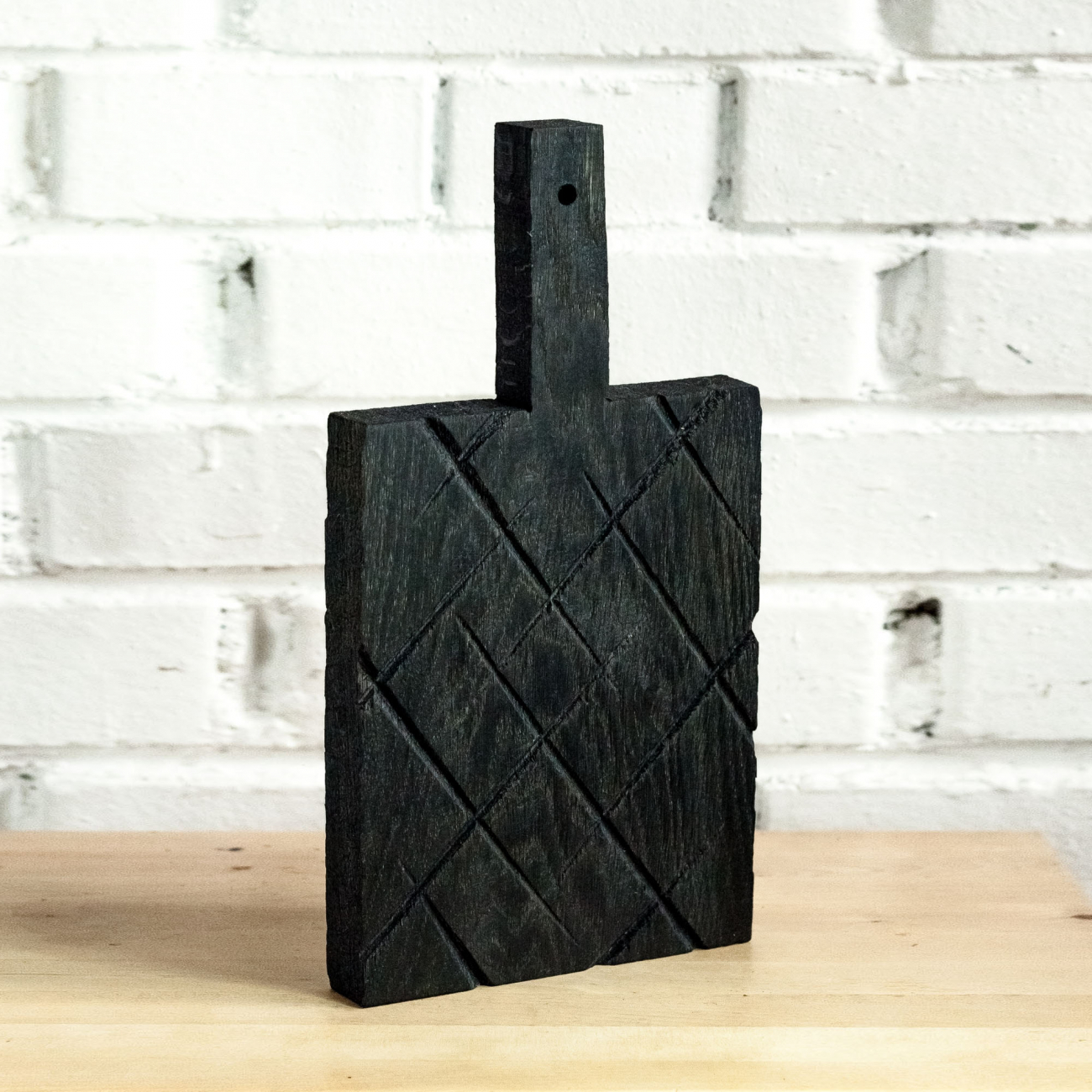 ЭСделана вручную. Покрытие: льняное масло. У доски есть две поверхности: декоративная с нанесенной на нее фактурой и рабочая, гладкая. Её можно использовать как разделочную, сервировочную доску для подачи или предмет декора интерьера. Из-за специфики ручного труда все предметы отличаются друг от друга. После влажной обработки доску нужно протирать полотенцем. При необходимости можно обновлять покрытие, протерев поверхность доски тряпочкой, смоченной льняным маслом.