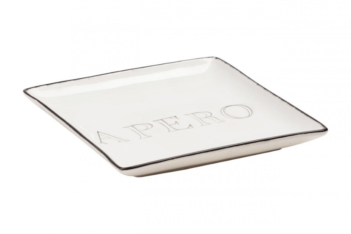 Декоративное блюдо Apero White прямоугольной формы изготовлено из керамики. Всё блюдо декорировано в белом цвете с надписью APERO, края блюда окантованы каймой черного цвета. Изготовлено в стиле Прованс. В комбинации с другими столовыми предметами создаст уникальную сервировку стола.