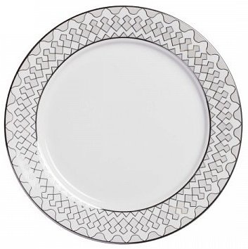 Тарелка классической формы изготовлена из фарфора белого цвета с нанесением по краю геометрического орнамента в сером цвете. Тарелка декорирована весьма элегантно, и заслуживает внимания покупателей. Тарелку можно приобрести отдельно или в комплекте с другими столовыми предметами из серии.