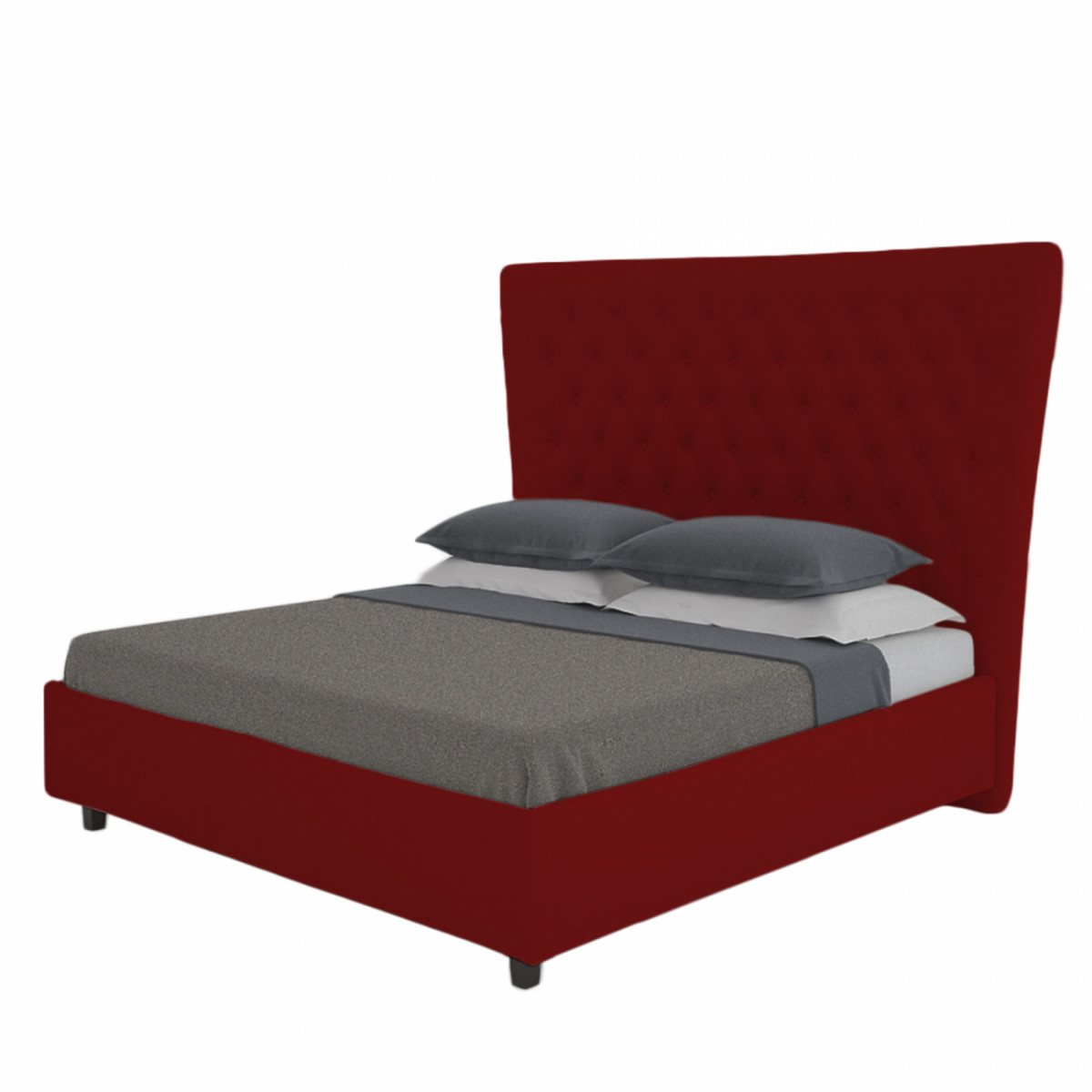 Великолепная двуспальная кровать QuickSand красного цвета изготовлена в стиле современного ар-деко. Каркас кровати изготовлен из МДФ, ножки выполнены из натурального дерева, что добавляет образу представительности и сдержанной роскоши. Высокое фигурное изголовье, обитое велюром, изящество линий и форм, изысканный дизайн и эффектный цвет делают эту модель неотразимой. Она смотрится одновременно уютно и элегантно, создавая в вашей спальне умиротворяющую атмосферу тишины и покоя. Размер спального места: 200*200 см.