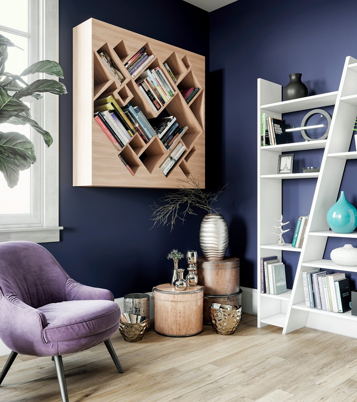 Стеллаж Геометрия беленый дуб от Odingeniy