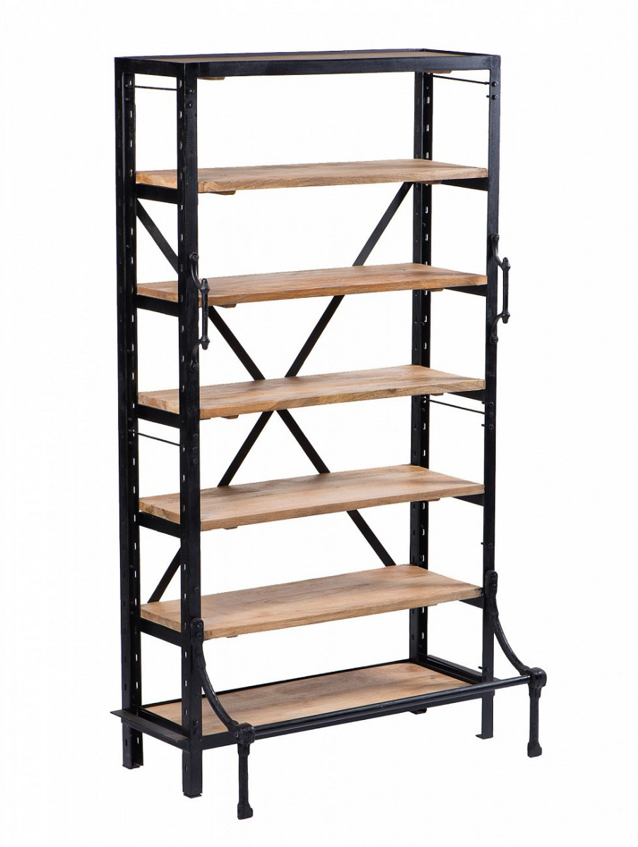 Одинарный стеллаж в современном стиле с деревянными полками станет прекрасным украшением в любом интерьере.