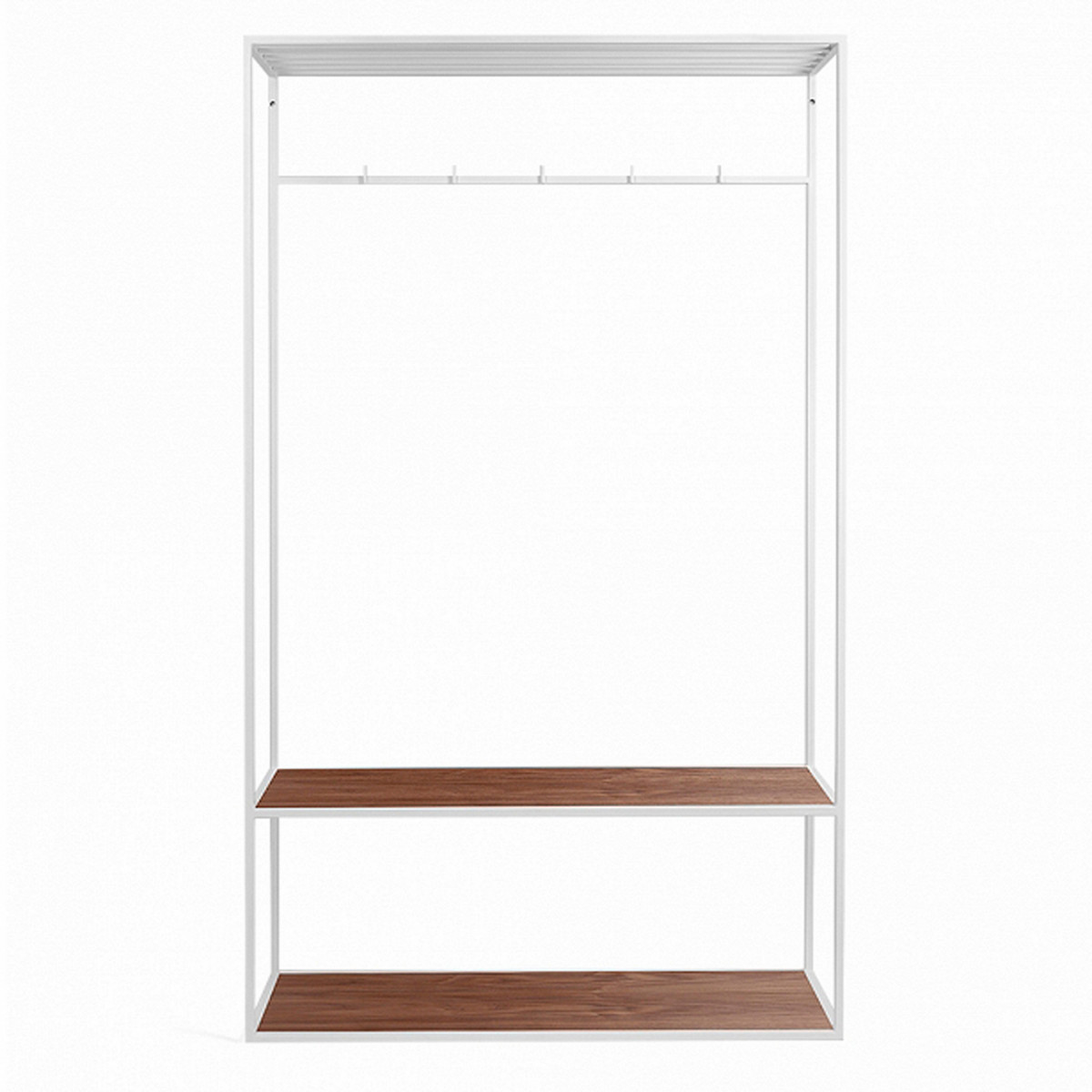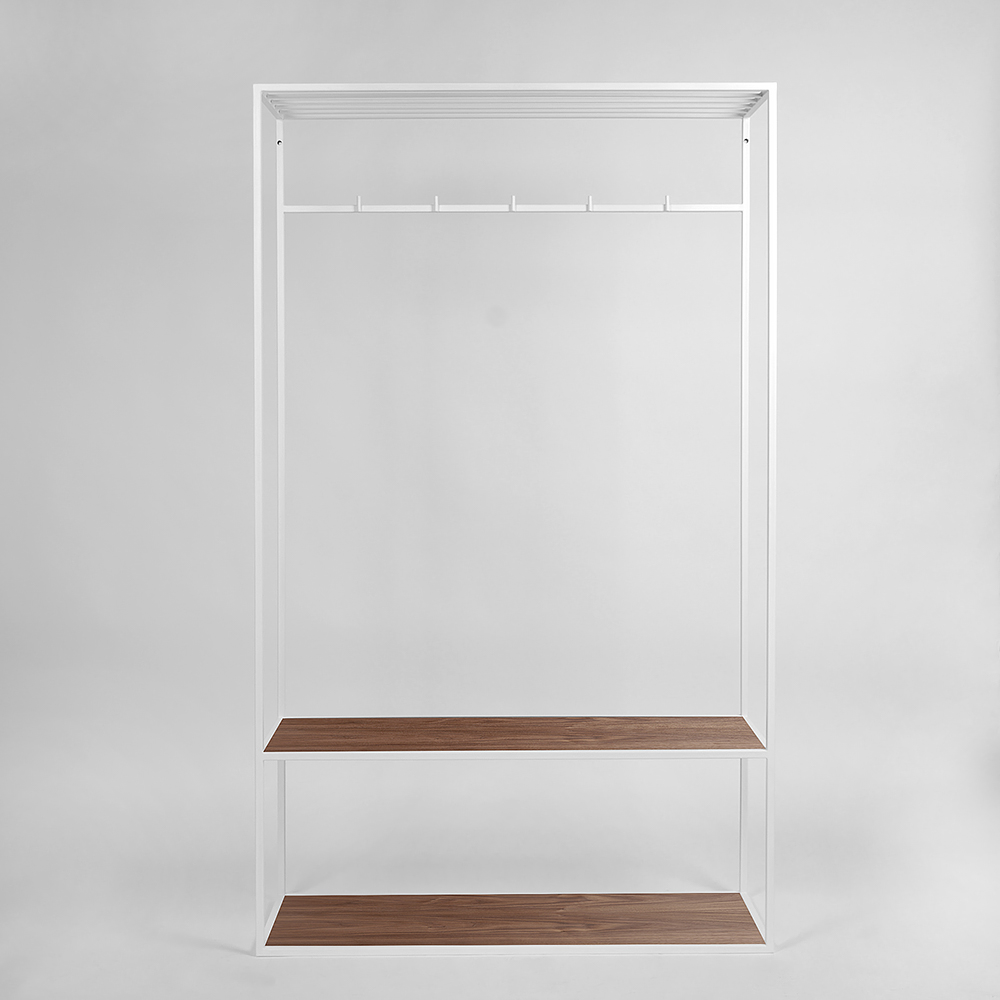 Вешалка в прихожую Hallra 2 – очередная модель бренда с рамой белого цвета и древесиной американского ореха. Белый цвет обладает массой положительных свойств. Если речь идет об интерьере, то он привносит гармонию, спокойствие, а также зрительно увеличивает пространство.