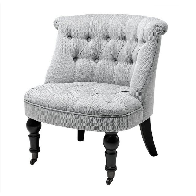 Кресло без подлокотников из коллекции Eichholtz. Спинка декорирована пуговицами. Ножки фигурной формы. Обивка - ткань.
