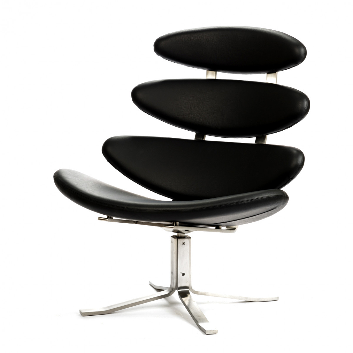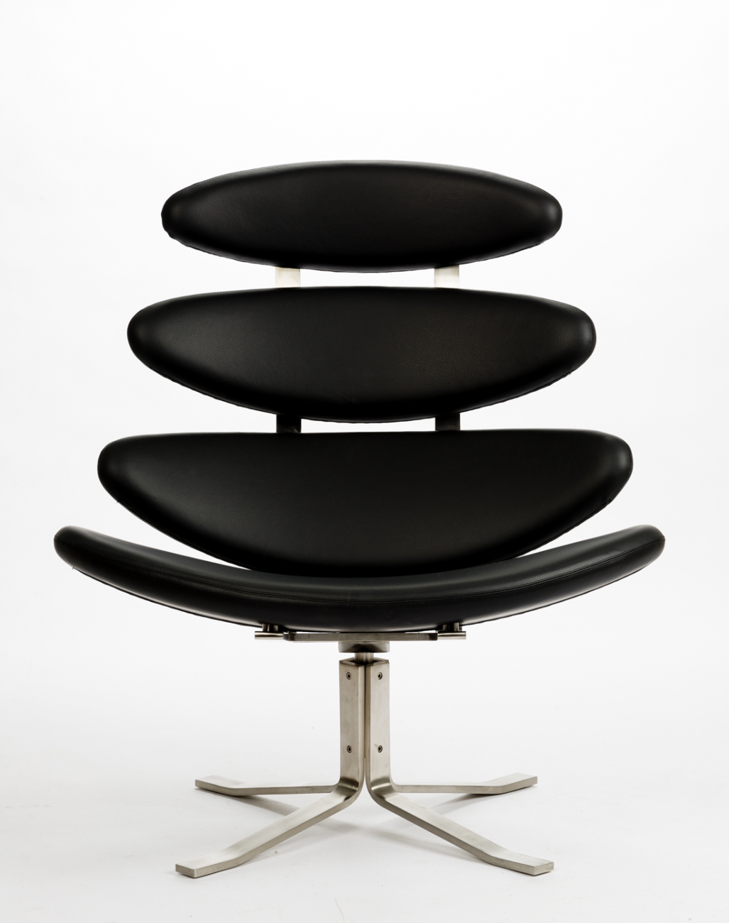 Кресло Corona — образец редкого сочетания натуральных округлых форм и строгих технических линий. Четыре мягкие подушки, призванные оказывать телу максимальную поддержку, наводят на явные ассоциации с позвоночником и ребрами человека, подчеркивая эргономичность конструкции.