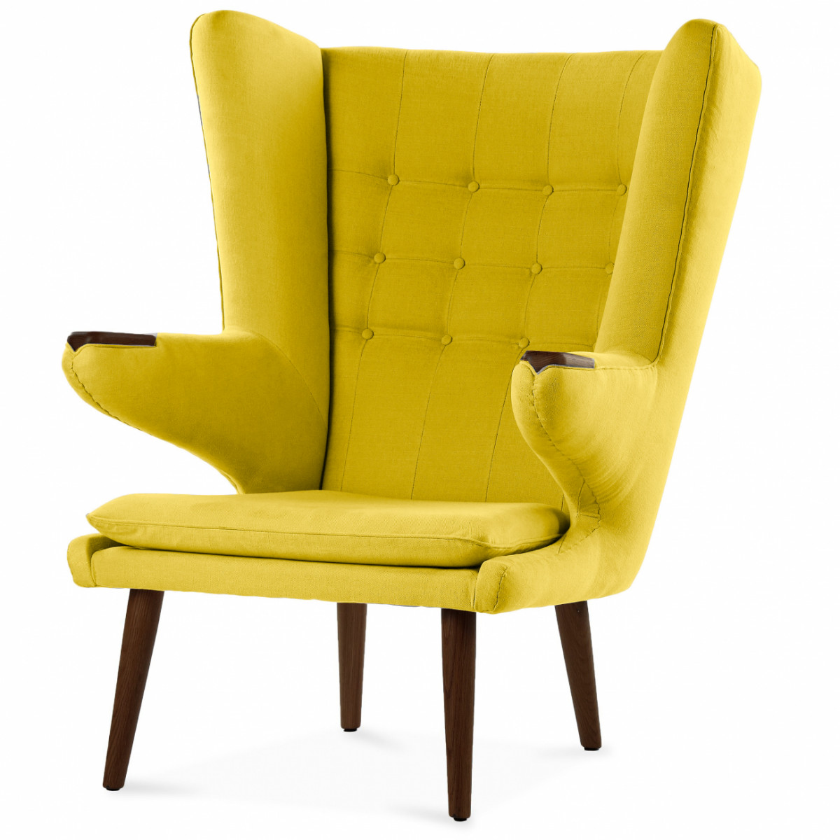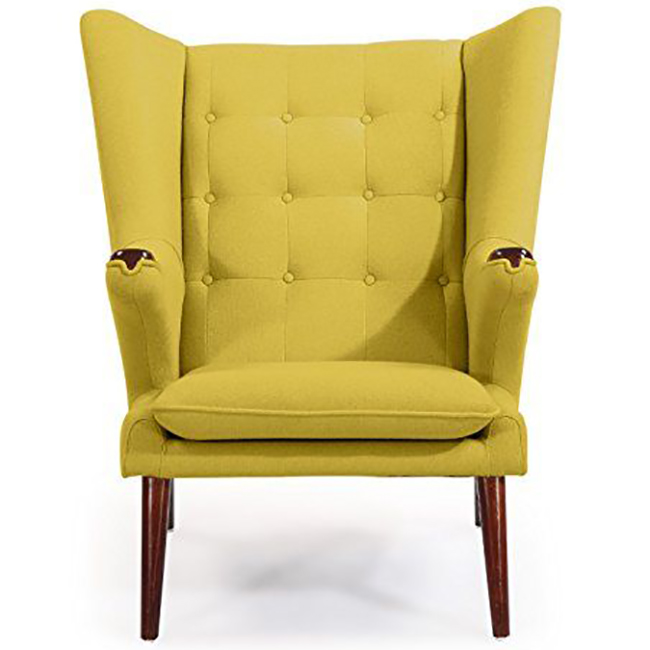 Красивое и удобное кресло для отдыха Papa Bear от датского дизайнера Ханса Вегнера, которое уже давно стало классикой. Кресло Papa Bear с неповторимым дизайном невероятно удобно и привлекательно. Название этого большого и уютного кресла, в дословном переводе означающее «папа медведь», навевает только самые уютные ассоциации. Удачное сочетание теплой фактуры дерева и нежного материала обивки из мягкого кашемира делают это кресло невероятно комфортабельным. Его классическая форма позволяет креслу органично смотреться в помещении любого типа. Широкая и высокая стеганая спинка, удобные подлокотники и устойчивые ножки из дерева — отличный пример оригинального домашнего кресла. Кресло Papa Bear желтое.