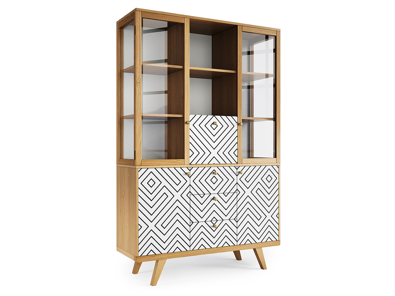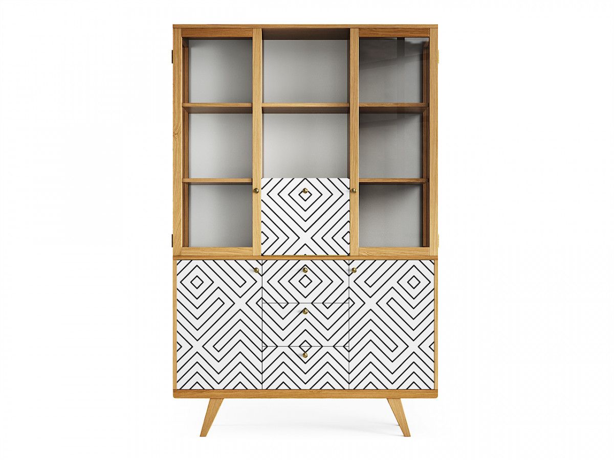 Буфет Thimon порадует увлеченных коллекционеров и неравнодушных к прекрасному - эта модель упорядочит домашнюю библиотеку, сохранит коллекцию фарфора, а также скроет личные вещи от посторонних. Оригинальная коллекция принтов на фасадах и неповторимые оттенки натурального дуба завершают образ буфета, который займет центральное место в гостиной или столовой.Особенности.Прозрачные боковые фасады со стеклом.Распашные дверцы изготовлены из массива дуба.Центральный фасад с откидной петлей и стопором.Нагрузка на каждую полку до 20 кг.Европейская фурнитура с плавным ходом и доводчиками.Предусмотрено крепление к стене.Материалы.Основание – массив дуба.Корпус – МДФ, натуральный шпон дуба.Фасады – МДФ, массив дуба.Каркас верхней секции – массив дуба, МДФ, натуральный шпон дуба, ЛДСП.Ящики, полки и перегородки нижней секции – ЛДСП, светло-серый.Фурнитура – петли с плавным закрыванием, направляющие с доводчиками, стальные крепежные элементы. Покрытие – тонировка, матовый лак, эмаль, принт.Ручки – античная латунь.