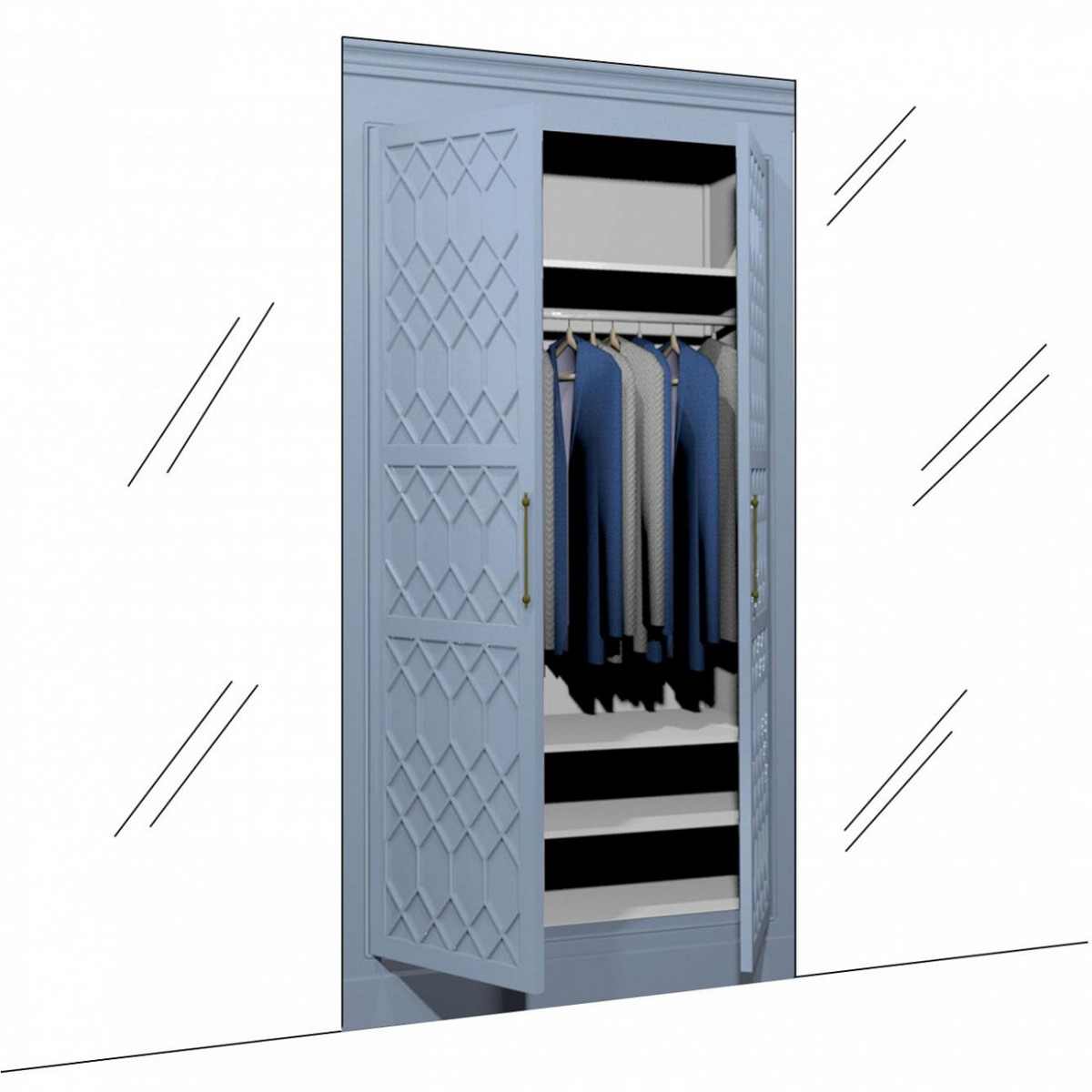 Гардероб встраиваемый Портленд без уголков васильковое поле