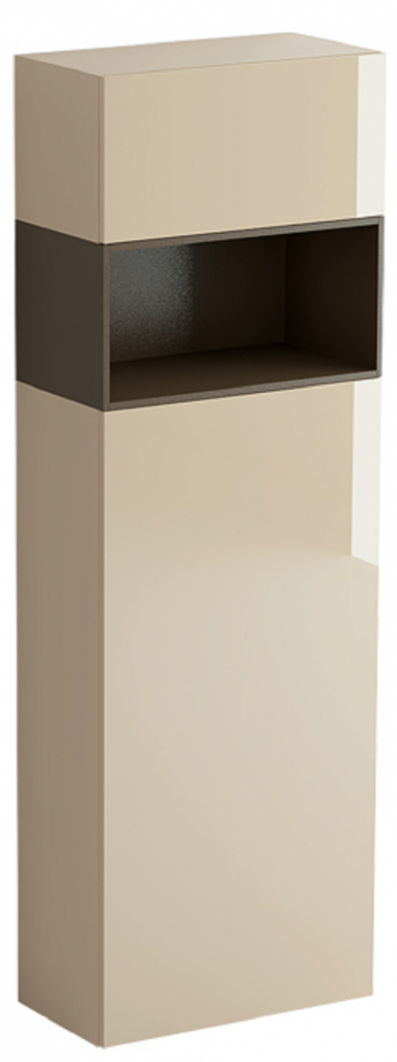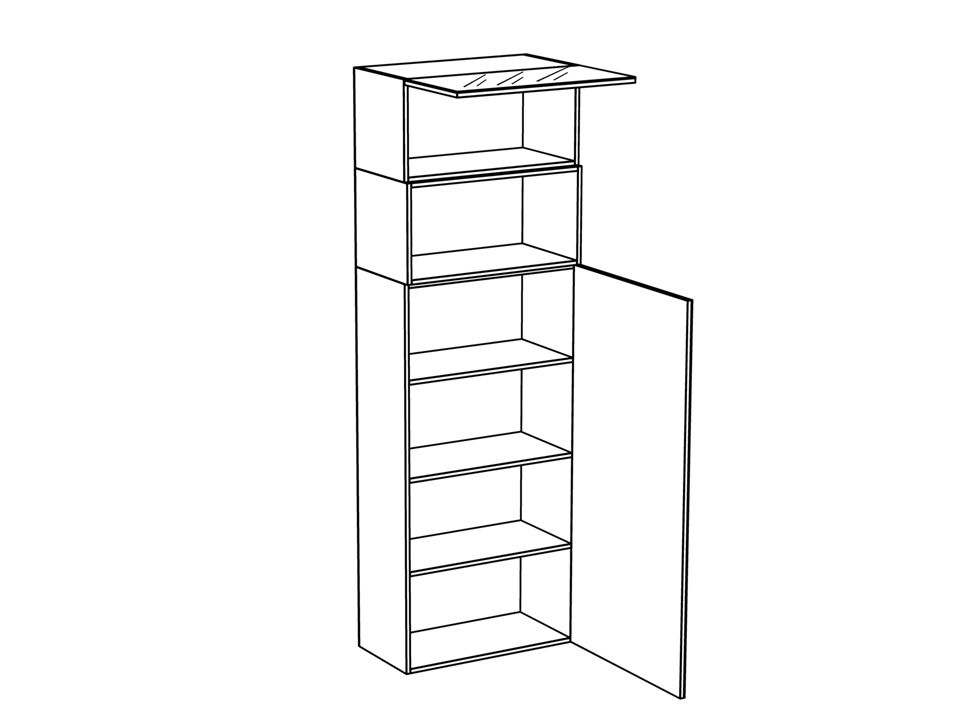 Шкаф состоит из двух отделений разделенных нишей. Нижнее отделение с распашной дверью оборудовано тремя полками, средняя является несъёмной. Дверь может быть установлена слева или справа. Верхнее отделение с подъёмной дверью.