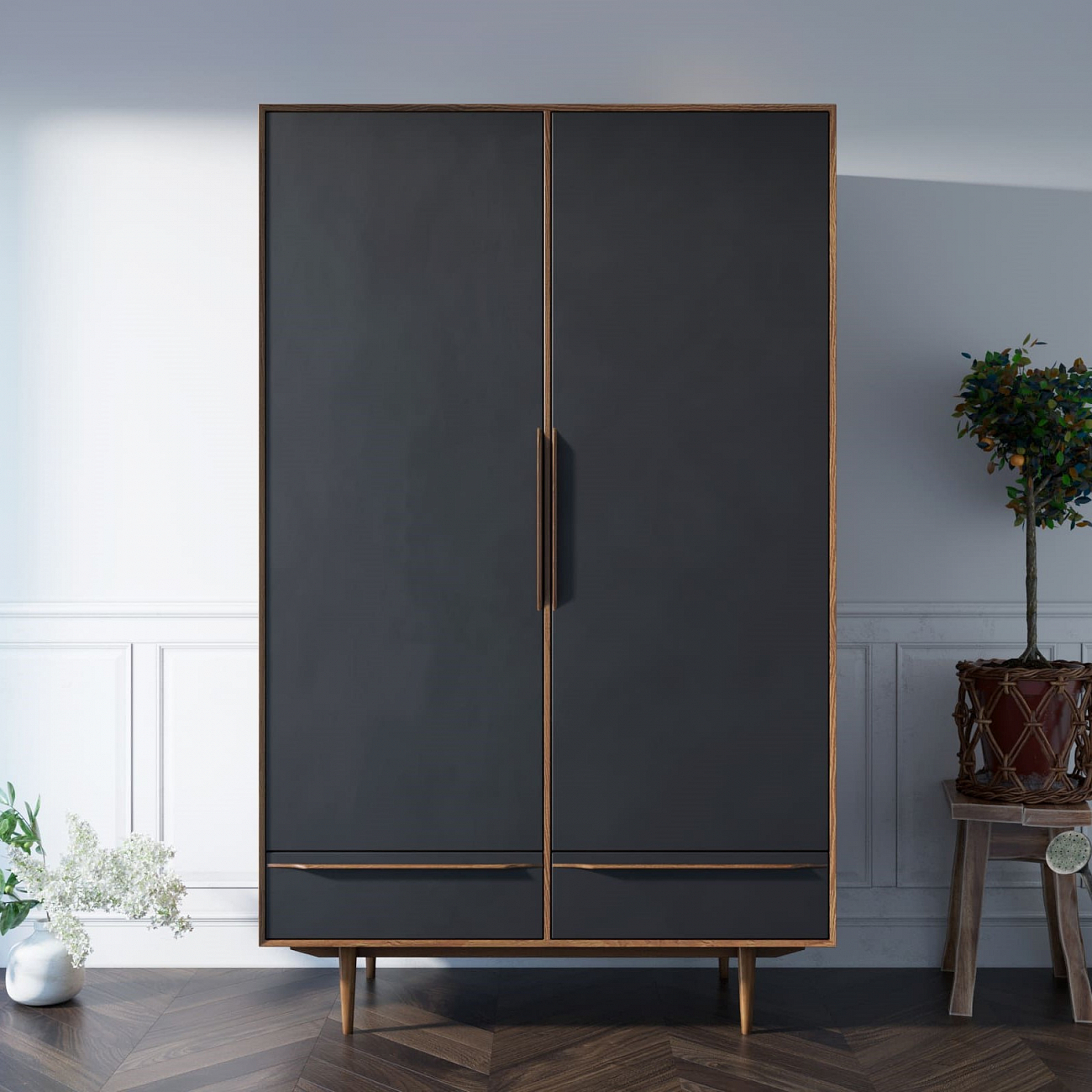 Шкаф двустворчатый Bruni Black с двумя ящиками