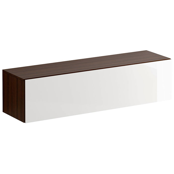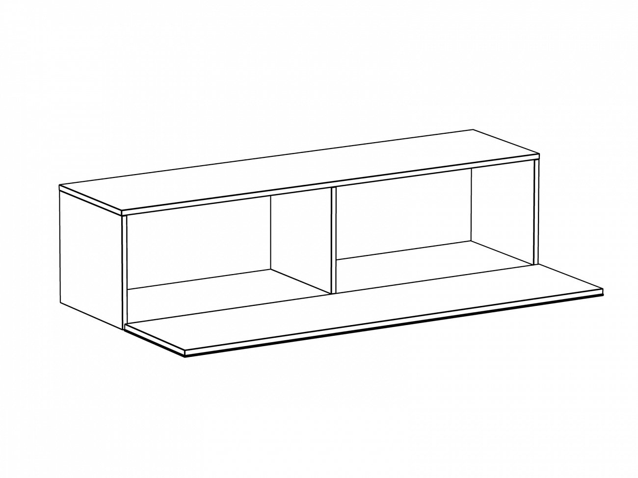 Шкаф имеет два отделения, образованные вертикальной перегородкой. Откидная дверь открывается по принципу «нажал-открыл». Задняя стенка черного цвета.
