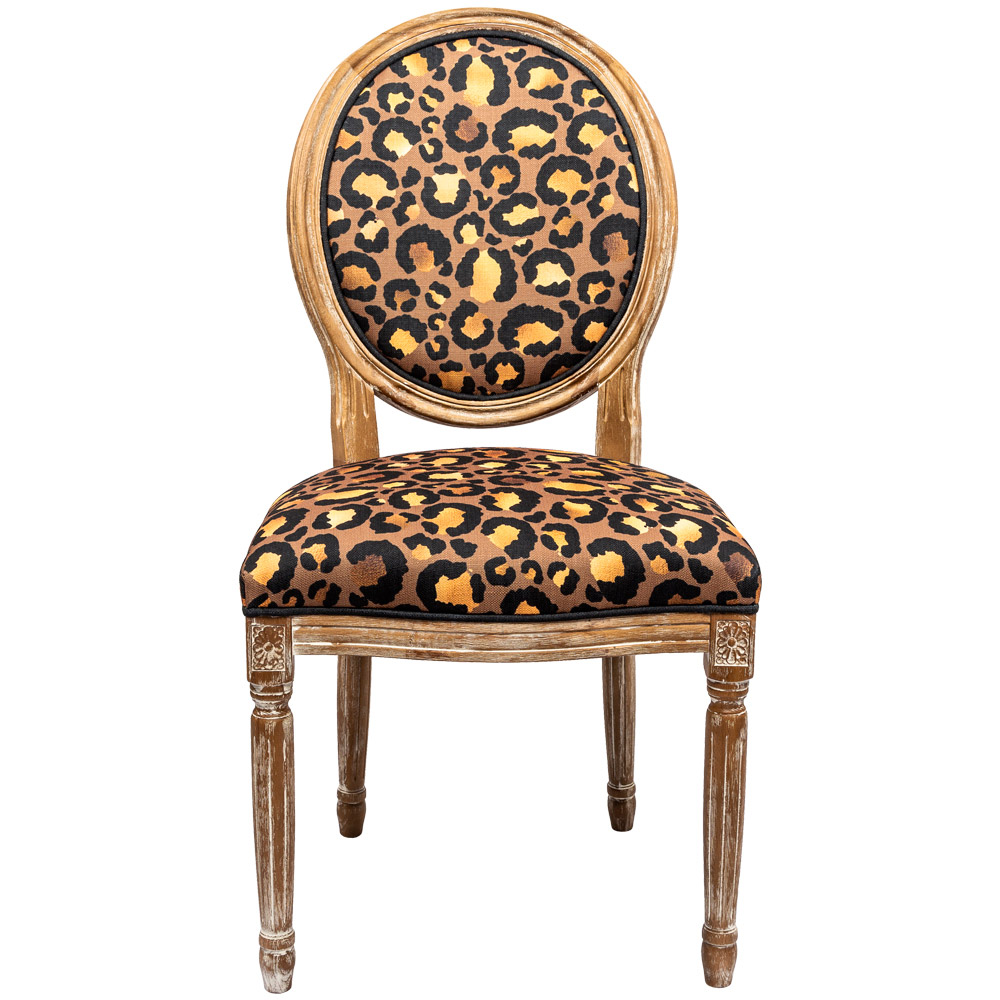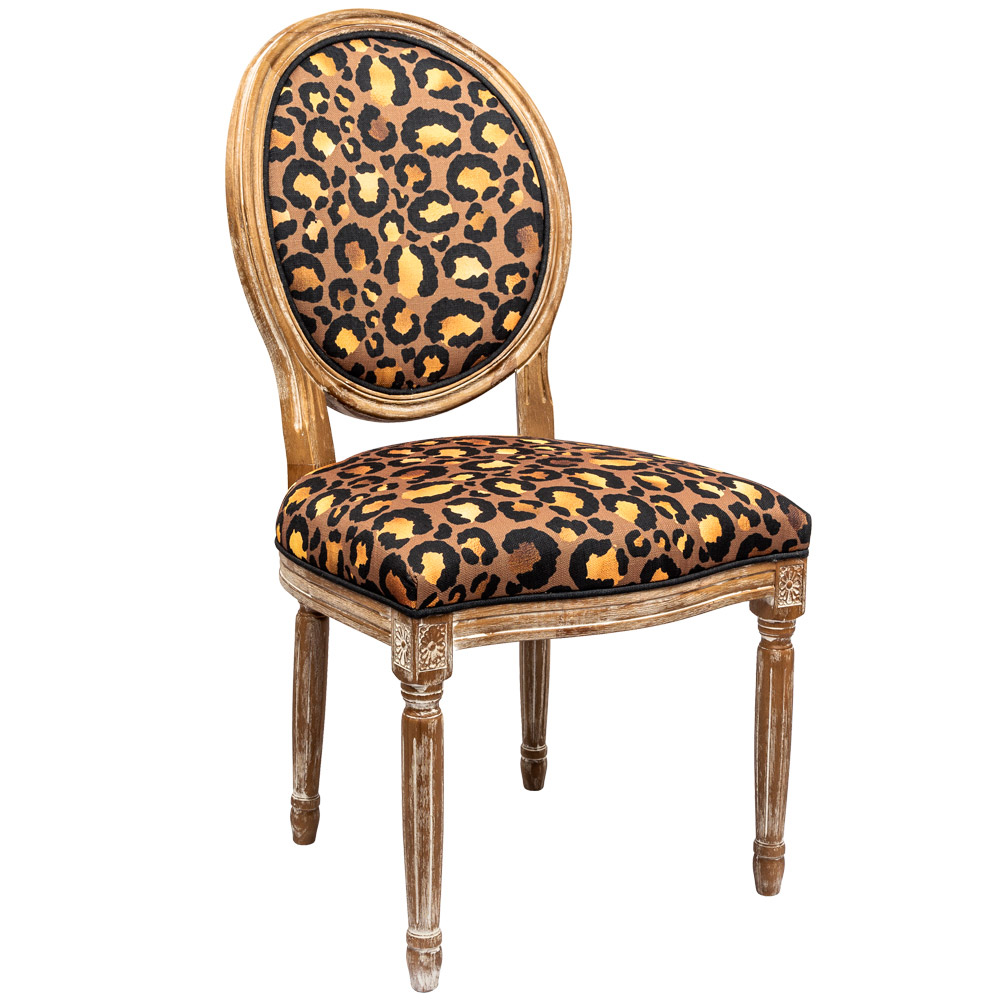 Леопардовый орнамент опоясывают всю обивочную ткань, включая оборотную сторону спинку: в любом ракурсе Ваш стул выглядит привлекательно и дорого.