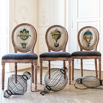 Конструкция стула Монгольфьер подражает французской королевской манере Луи-Филиппа: аристократически сдержанный силуэт заигрывает с тончайшей резьбой, выточенной с ювелирной меткостью. Французский дворцовый стиль четыре века подряд не сходит с интерьерных подиумов. Приобретая такую модель, можно быть уверенными в её эклектическом единстве с роскошным ренессансом и изнеженным ампиром, аскетичным модерном и семейным провансом.