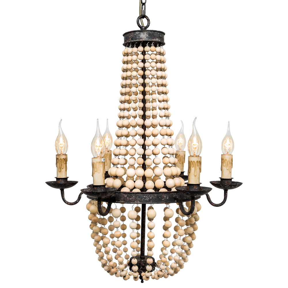 Люстра «Эрлин». Интерьерная сага в исполнении люстры «Эрлин». Послушаем внимательно, посмотрим обязательно. Поэтическая форма исполнения данного объекта поведает о чудесах света, которые стоит воссоздать в интерьеры наших домов. Люстра 'Эрлин' - неожиданный дизайн, трансформирующий дворцовую роскошь в природный уют 'шале' и 'эко-стиля'. Натуральное дерево выточено в идеально круглые бусины, ниспадающие стройным нарядным каскадом. Люстра, оснащенная шестью электрическими лампами, способна осветить помещение не менее 30 м². Для комплектации люстры 'Эрлин' используйте электрические 'Ретро-лампочки Эдисона #13'. Их дизайн в форме свечи идеально подходит для этой люстры.