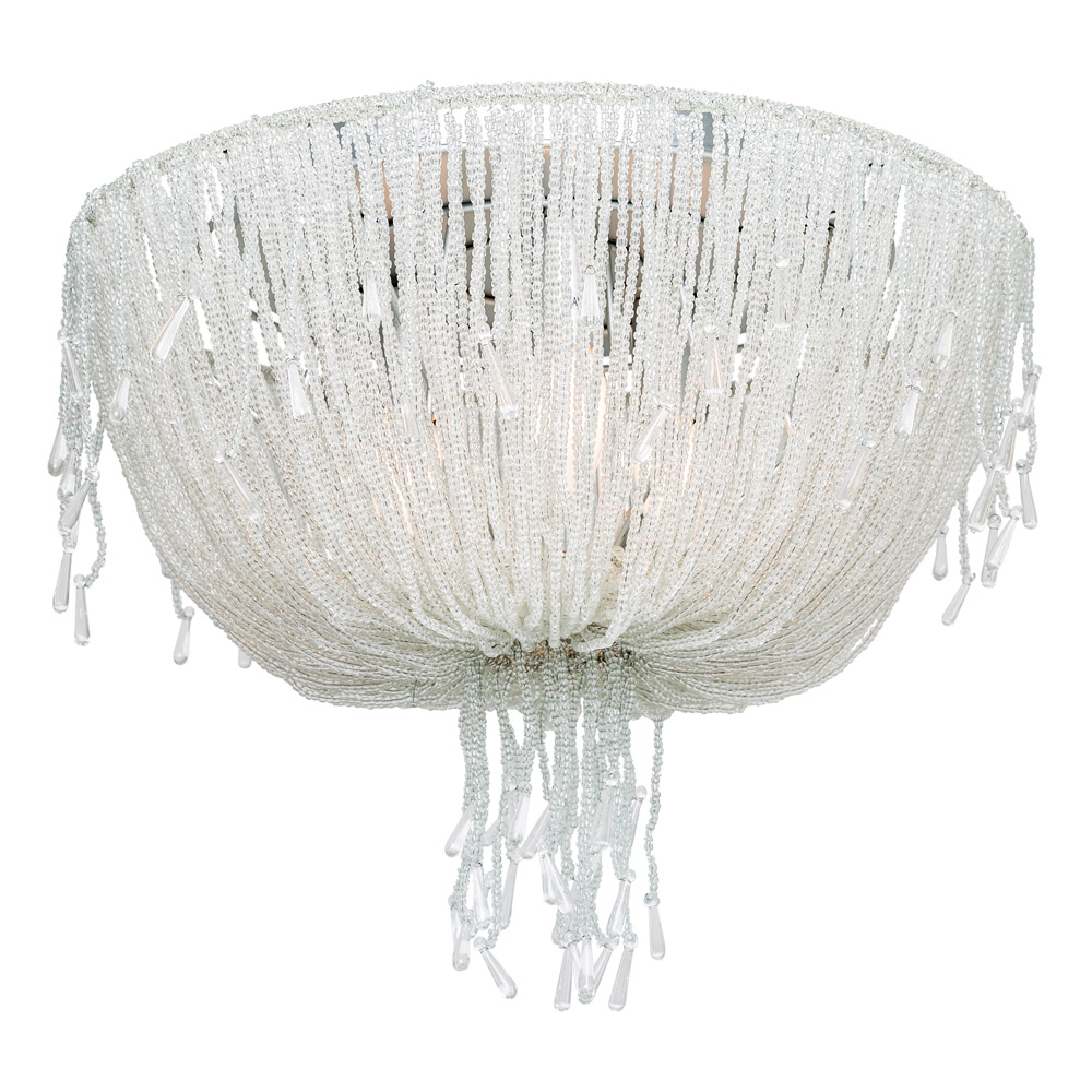 Размер: Ø 44 см, высота 22 см Количество ламп: 3 Тип электрических ламп: E14 Продается без ламп Материалы: каркас - металл, гирлянды - хрусталь Цвет: каркас - серебряный, гирлянды - мерцающий белый Размер в упаковке: 53×53×29 см Вес: 5,3 кг, вес в упаковке: 6,3 кг