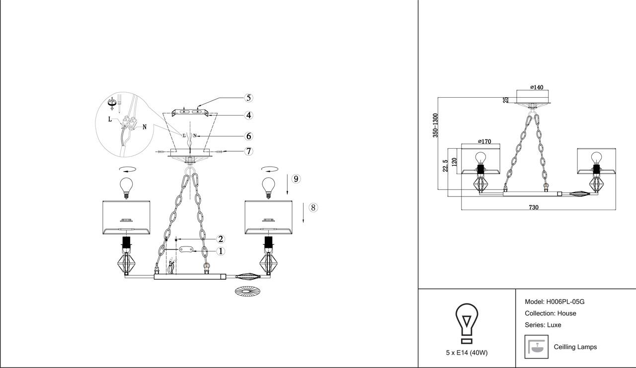 | Количество ламп | 5 | |