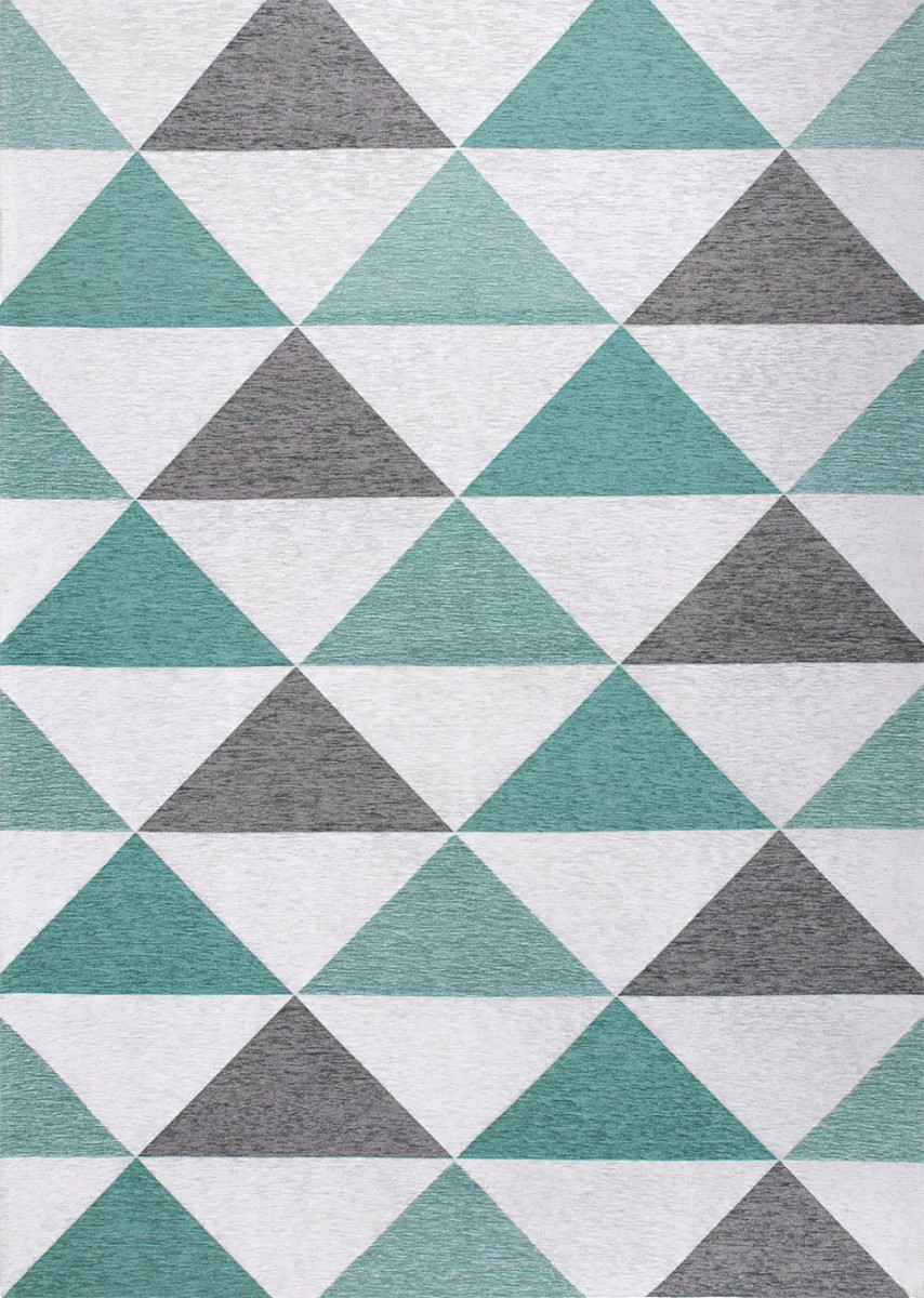 Ковер LINE NILS. Скандинавские мотивы нашли отражение в лаконичном дизайне ковра - четкий геометрический рисунок, гармония формы и цвета, практичная шенилловая основа. Все это соответствует основным принципам популярного стиля - минимализм, экологичность, функциональность. Микс нежно-ментоловых и серо-графитовых треугольников на светлой основе делает рисунок ковра объемным, придает глубину и динамичность.