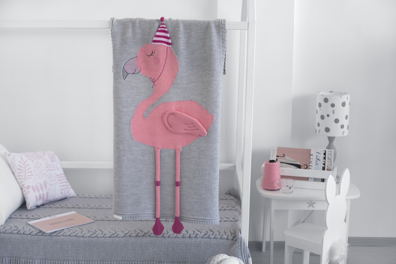 Плед с “Фламинго” отлично дополняет подушка, он также является самодостаточным милейшим предметом декора не только для малышей, но и для взрослых! Отличная идея для всех, кто выбирает уютный подарок.