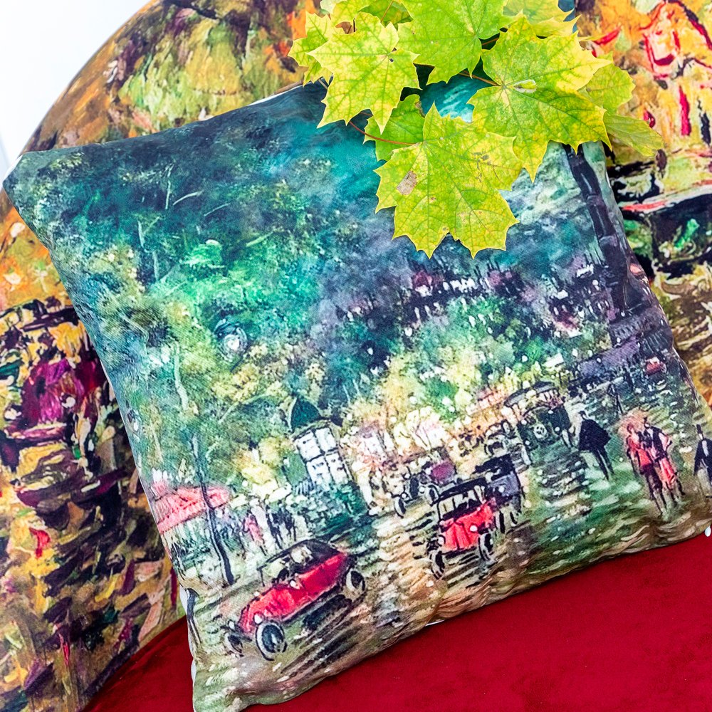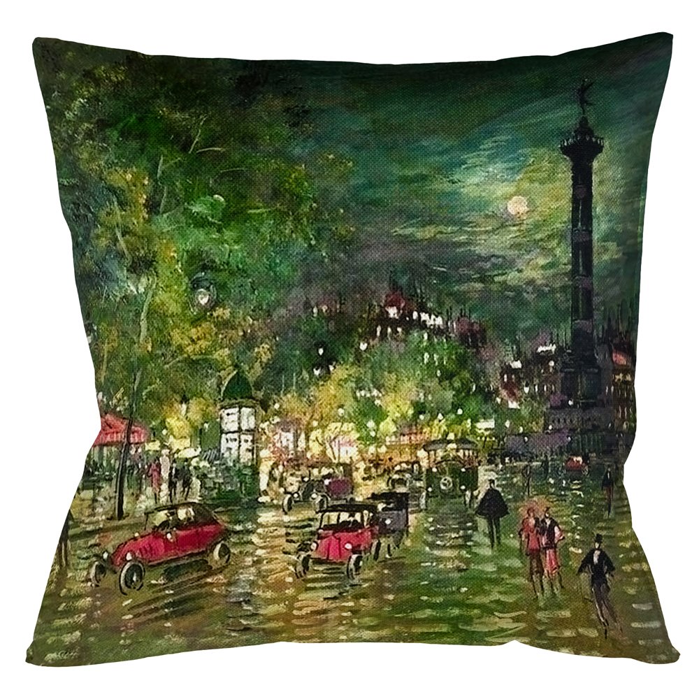 Кредо импрессионизма – удивлять и впечатлять. Свежесть и свет, легкость и элегантность - это выбор интерьеров, способных совместить стиль и уют, классику и моду. Подушку раскрасила картина «Бастилия», созданная в 1928 году первым русским импрессионистом Константином Коровиным. Ночной пейзаж завораживает игрой света и отражений. Мокрый асфальт сияет искрами света, отражениями рекламных огней, автомобильных фар, фонарей и бездонного неба. Динамичные мазки красок фантастически передают восторженную феерию парижской ночной жизни.