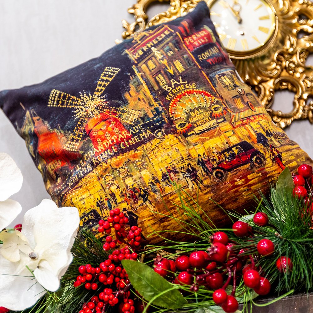 Парижское кабаре «Мулен Руж» - не только мировая достопримечательность, но и символ светской жизни и восторга. Появившись в интерьере, он разделит с обстановкой стиль и настроение, заявит эрудицию и рафинированные вкусы владельца. Подушку раскрасила одноименная картина первого русского импрессиониста Константина Коровина из серии ночных пейзажей «Парижские огни», вознесшей художника в элиту европейского импрессионизма.