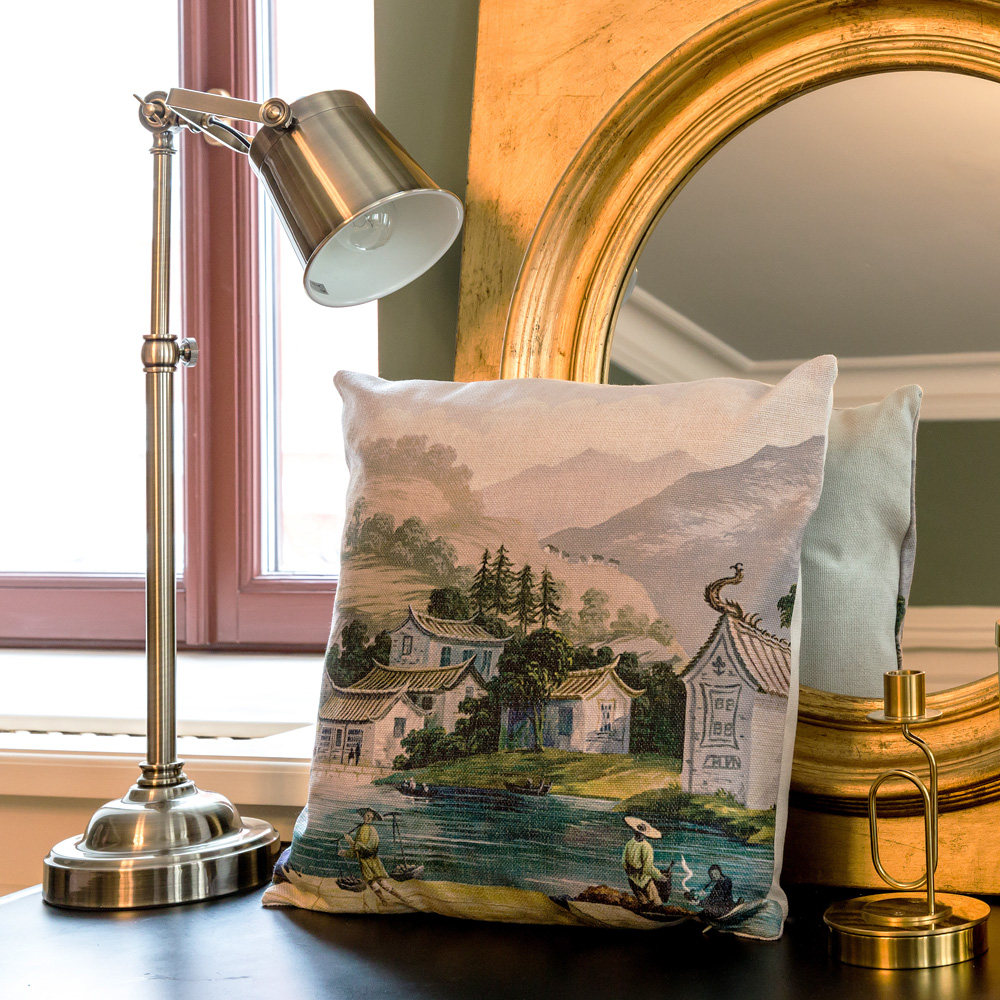 Стильные аксессуары позволят Вам преобразить атмосферу дома, превращая его в оазис уюта и гостеприимства. Образ складывается из мозаики мелочей, каждая из которых жизненно важна для истинной гармонии. Не говоря уже о полезных свойствах предметов. В этом смысле подушка, - вне конкуренции, - самое необходимое, приятное, желанное приобретение. Подушка раскрашена натуральным этническим пейзажем древнего города Нанкина, прославившегося первой столицей Китая и красивейшим побережьем реки Янцзы.
