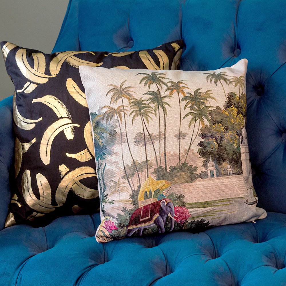 Подушка давно уже не воспринимается сугубо атрибутом для сна. Её не менее важное назначение - уют, тепло и мягкость нашей обстановки. С коллекцией «Живописный интерьер» Вы моментально оцените, насколько светлее, радостнее и теплее стал Ваш дом. Подушка раскрашена романтичным историческим пейзажем города Пондичерри, - столицы Французской Индии. Дизайн приоритетен домашним интерьерам, ведь Индия всегда славилась разноцветными тканями и живописными сюжетами.