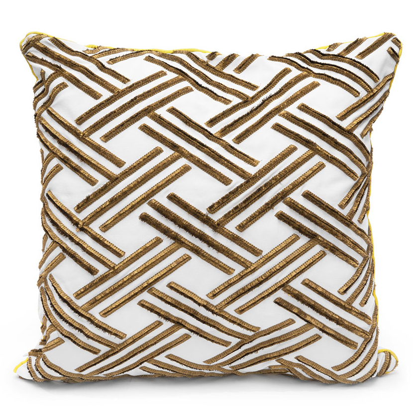 Геометрические рисунки популярны вот уже не один сезон и прекрасно сочетаются с любым стилем в интерьере. Полностью вышитый узор выполнен с эффектом бахромы, что придает дополнительный объем рисунку. Окантовка по краю. Скрытая молния. Внутренняя подушка из холлофайбера. В производстве использовано высококачественное первичное сырье из Южной Кореи и не использованы волокна вторичной переработки.