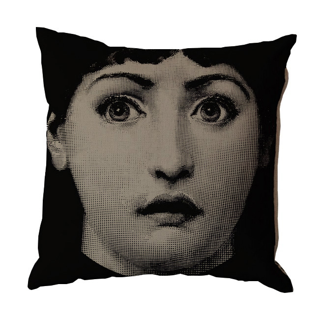 Еще один портрет Лины Кавальери в исполнении Пьеро Форназетти Piero Fornasetti. На этот раз знаменитая оперная дива смотрит на нас широко открытыми глазами. В этом взгляде явно читается удивление — неужели вы ещё не купили такую замечательную подушку? Торопитесь, сделайте себе подарок!