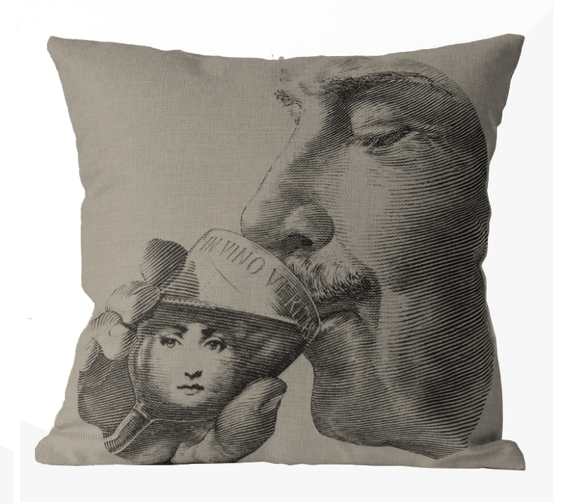 Дизайнер Пьеро Форназетти Piero Fornasetti был одержим прекрасной Линой Кавальери, как Сальвадор Дали своей Галой, а Пикассо — своевольной Дорой Маар. Не зря изображение Лины стало фирменным знаком знаменитого итальянского дизайнера. Эта оригинальная подушка с портретом Сальвадора Дали, пьющего вино из бокала с изображением Лины и девизом In Vino Veritas: Истина — в вине, в полной мере демонстрирует собственный оригинальный стиль Форназетти и одну из главных тем его творчества. Эта белая подушка станет эксклюзивным украшением вашего стильного интерьера или оригинальным подарком.