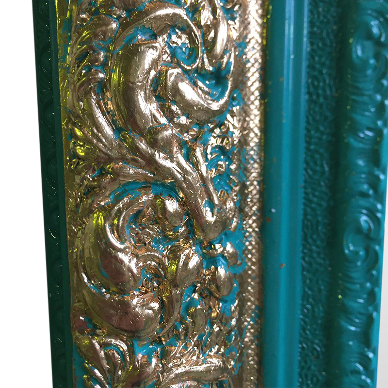 Зеркало напольное в полный рост бирюзовое с золотой резьбой Gracefulness