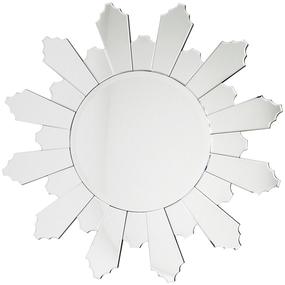 Популярность зеркал в форме солнца и звезды объясняется не только сегодняшней интерьерной модой. Превосходная зеркальная рама осветит любое из домашних помещений, довольных гармоничной формой и искристым настроением. Зеркальные ядро и лучи рамы опоясаны тонкими фацетными гранями. Амальгама распространяется даже на боковые грани, мерцающие серебристыми зеркальными бликами.